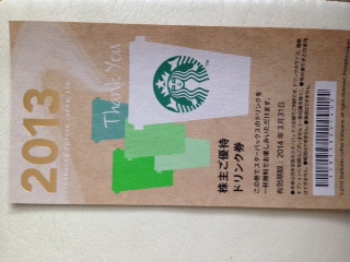 以前から気になっていたスターバックコーヒーの株主優待券が